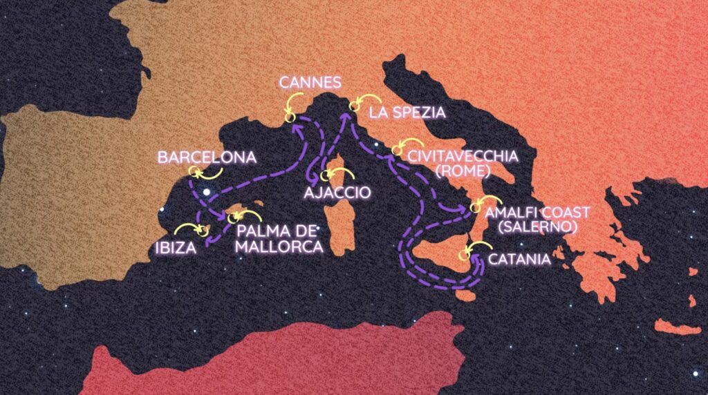 This unforgettable Mediterranean sailing begins in Barcelona and ends in Rome, visiting some of Europe’s most inspiring coastal destinations along the way.